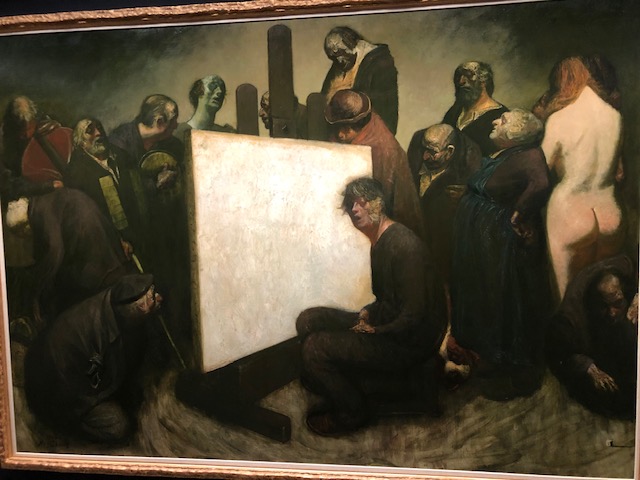 一番感動したのは「私」という題の、キャンバスに向かった自身とその周囲に描かれた人物の群れです。