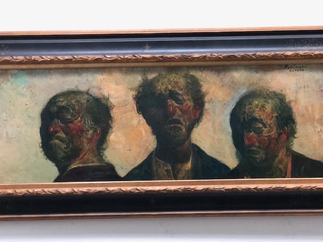自画像には目が省略されており、周囲の人物はすべて彼の心象だそうです。